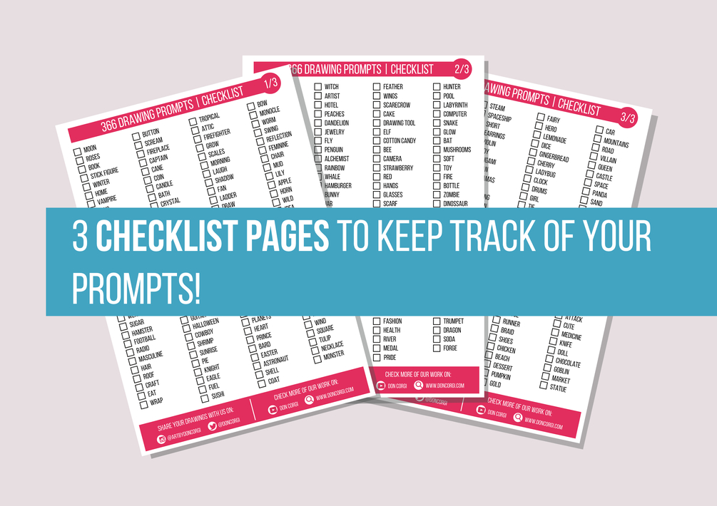 - 3 Checklists Of The Drawing Prompts (PDF and JPG)